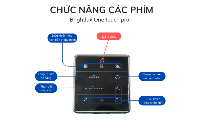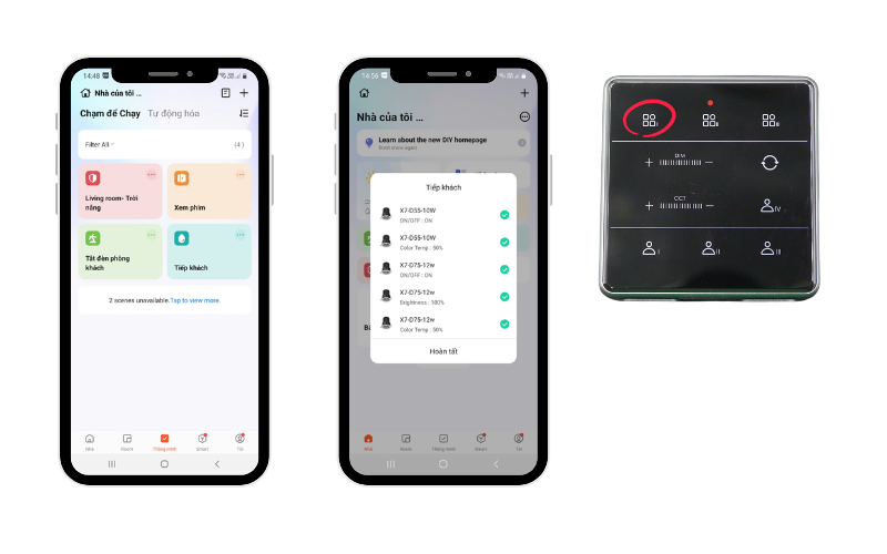 Sau khi thiết lập các kịch bản chiếu sáng trên APP. Bạn có thể gán tối đa 3 kịch bản cho bảng điều khiển.