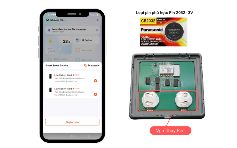 Khi trên APP xuất hiện cảnh báo Pin yếu , bạn nên thay Pin sớm để tránh gián đoạn trải nghiệm.