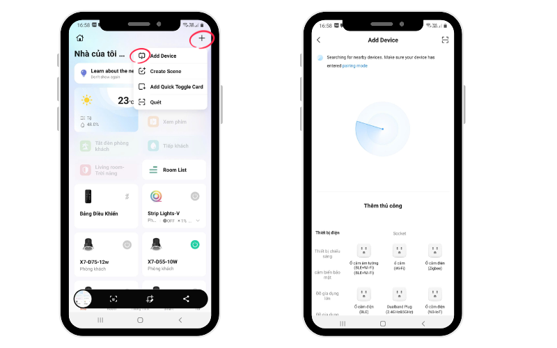 Bước 3: Mở App Tuya Smart -> Bấm vào dấu ” + ” --> Bấm vào ” Add Device ” và đợi quét thiết bị