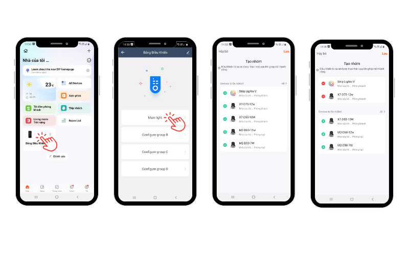 Chạm vào biểu tượng “ Bảng điều khiển ” -> Vào các nhóm -> Chọn đèn -> Lưu