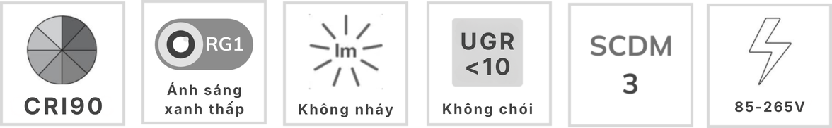 | Sản phẩm | MSP | Công suất | CRI | Khoét lỗ | Ánh sáng | Góc chiếu | Màu choá | Lumen | Driver | Giá |